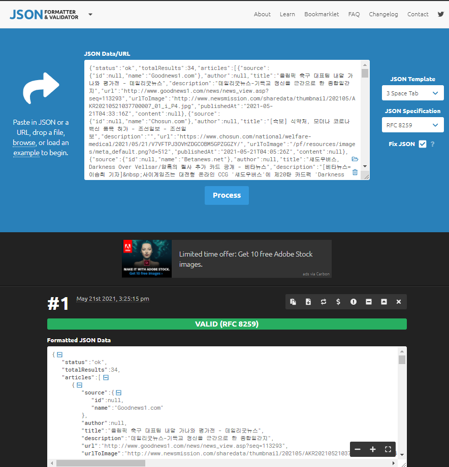 REST API를 사용하거나 할때 결과로 받은 JSON String을 보기좋게 Formatting하기 위한 싸이트 소개