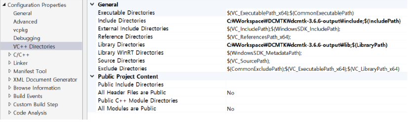 - Include Directory : C:\Workspace\DCMTK\dcmtk-3.6.6-output\include