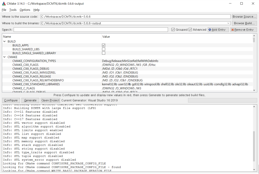- Library Directory : C:\Workspace\DCMTK\dcmtk-3.6.6-output\lib