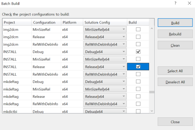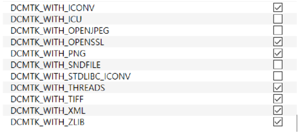 - DCMTK_OVERWRITE_WIN32_COMPILER_FLAGS 체크해제