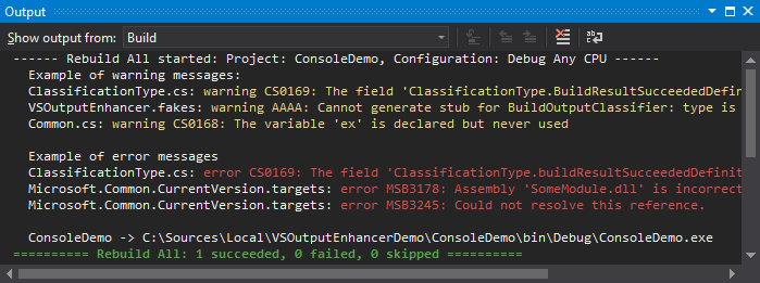 — Build/rebuild result messages