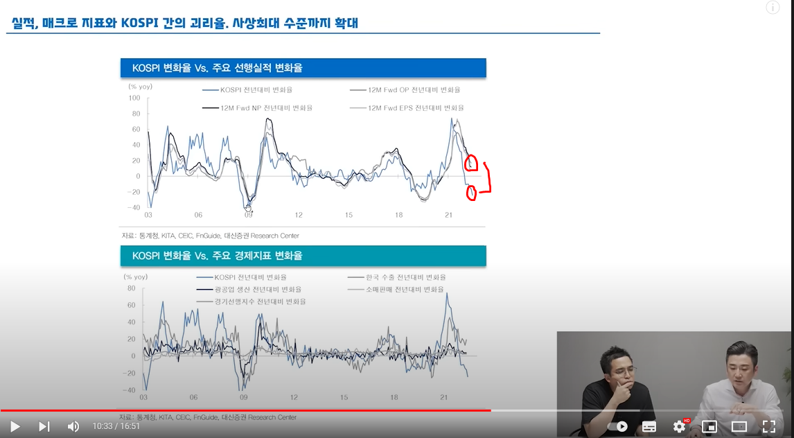 위 표는 KOSPI 전년대비 별화율이다. 보통 비슷하게 흘러가고 있는대 현재 과하게 내려가 있다.