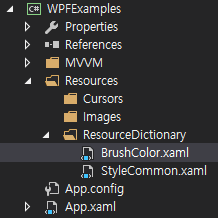 - StyleCommon.xaml : UI Control들에 적용될 여러가지 스타일들에 대하여 정의